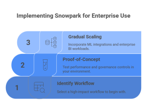 Implement Snowpark on non-critical pipelines to validate performance, cost efficiency, and operational impact. This phase helps teams understand execution behavior without introducing business risk.